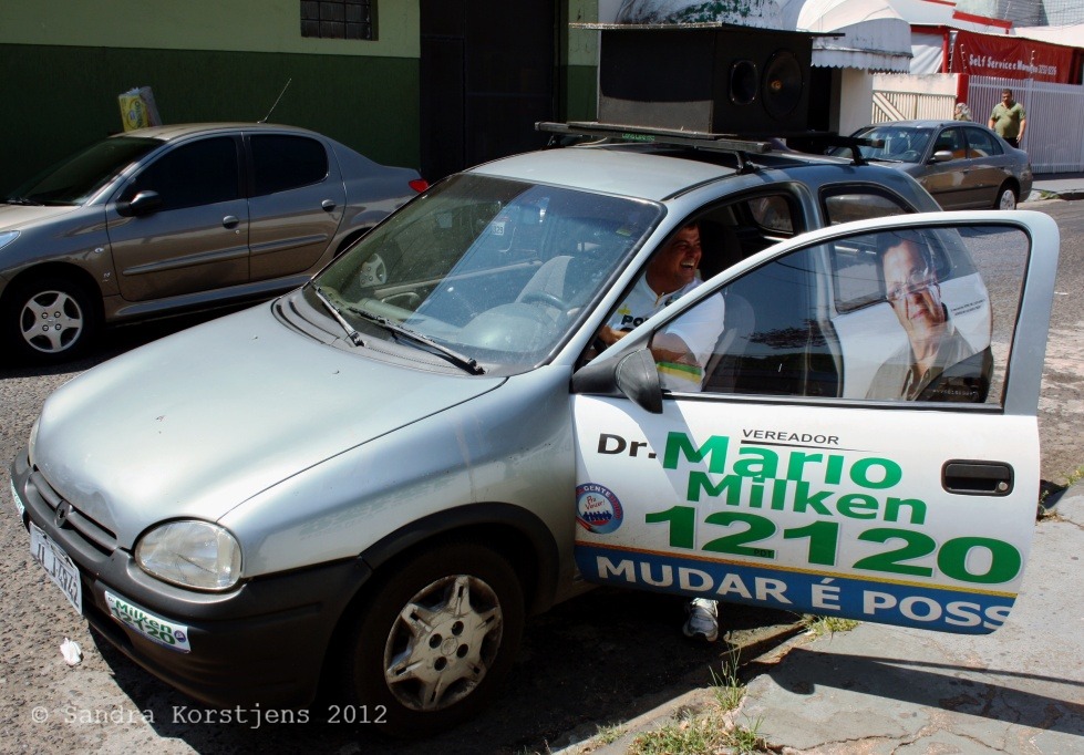 Een van de vele campagneauto’s met een grote geluidsinstallatie op het dak. Gepost op 9 oktober 2012 door Sandra Korstjens