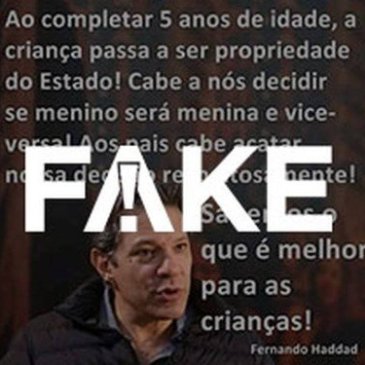 Het bericht is zo belachelijk dat ik me bijna niet kan voorstellen dat Brazilianen het echt geloven. “Als een kind vijf jaar is dan wordt hij eigendom van de staat. Het is aan ons om te beslissen of een jongen een meisje wordt en andersom.” Die tekst staat naast een foto van de linkse Braziliaanse presidentskandidaat … More Weg met de feiten